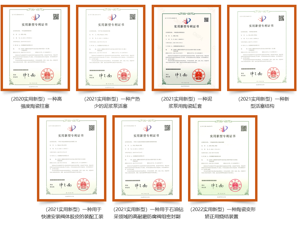 公司積極開(kāi)展新材料、新技術(shù)、新產(chǎn)品的研發(fā)及應(yīng)用,取得了多項(xiàng)卓有成效的合作成果。近年來(lái)研發(fā)團(tuán)隊(duì)已授權(quán)專利32項(xiàng),其中發(fā)明專利5 項(xiàng)。陶瓷結(jié)構(gòu)件的兩個(gè)新產(chǎn)品研發(fā)分別獲得“中國(guó)創(chuàng)翼(2015)青年創(chuàng)業(yè)創(chuàng)新大賽”銀翼獎(jiǎng)和“第四屆中國(guó)創(chuàng)新創(chuàng)業(yè)大賽”優(yōu)秀企業(yè)獎(jiǎng),陶瓷缸套產(chǎn)品被授予“安徽工業(yè)精品”,“高壓泵用高強(qiáng)度高耐磨陶瓷基關(guān)鍵結(jié)構(gòu)件研發(fā)及產(chǎn)業(yè)化”項(xiàng)目獲得省級(jí)科技進(jìn)步三等獎(jiǎng)。主持制定《柱塞泵用氧化物陶瓷柱塞》國(guó)家標(biāo)準(zhǔn)。